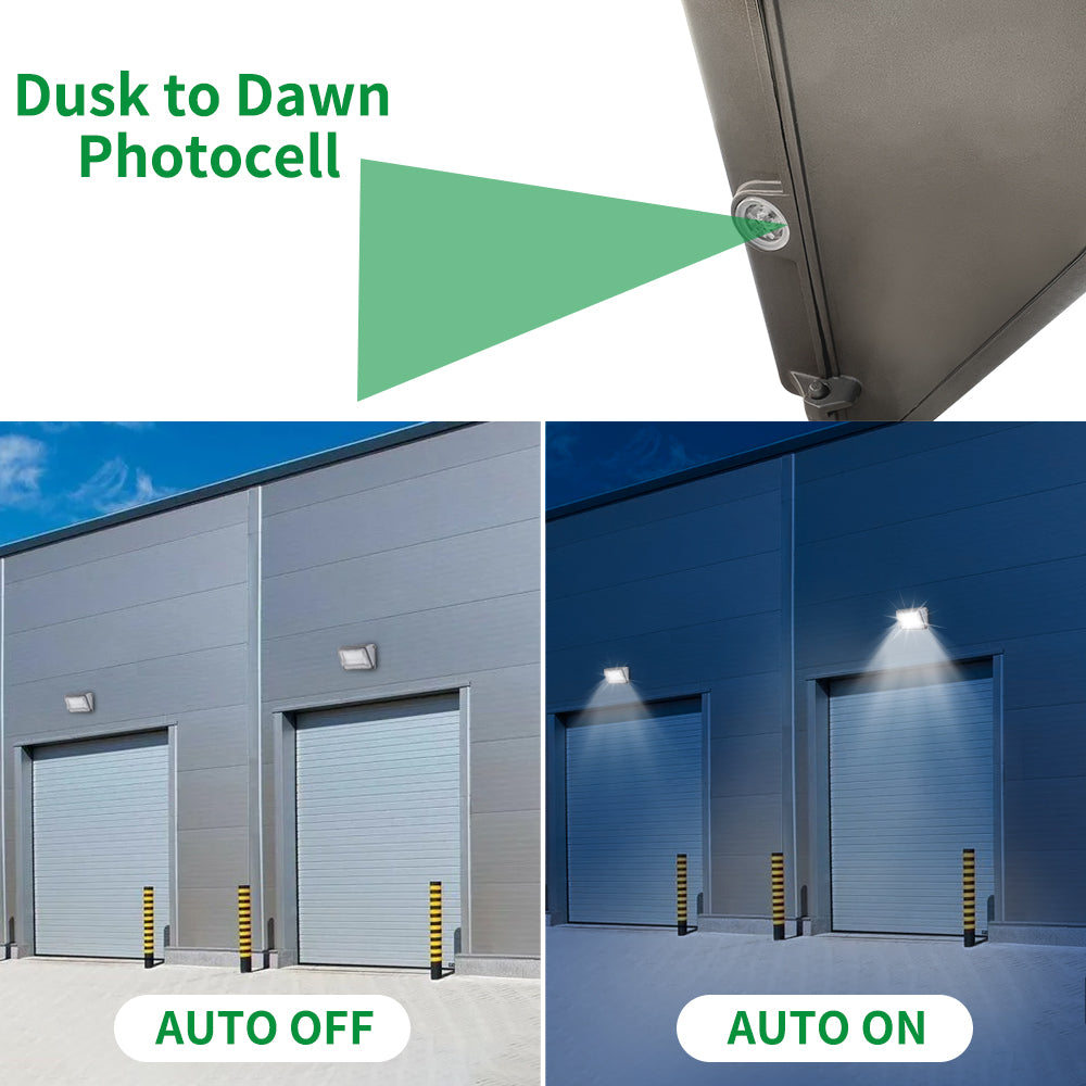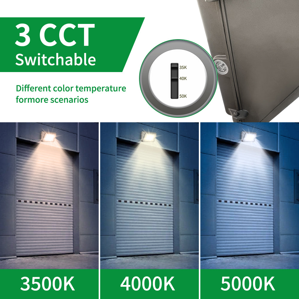 Haloitte Lighting LED Wall Pack Light combines energy efficiency, durability, and customizable options, offering adjustable color temperatures of 3500K, 4000K, and 5000K, and selectable wattage options of 45W, 60W, or 80W. Built with a corrosion-resistant dark bronze die-cast aluminum housing and a UV-stabilized borosilicate glass lens, this IP65-rated fixture withstands harsh conditions and ensures over 50,000 hours of reliable operation. ETL and DLC P certified for rebates, it reduces energy costs by up to 70% while enhancing safety and visibility in commercial, residential, and industrial spaces. Backed by a 5-year warranty, this sleek, versatile light is a dependable choice for outdoor lighting applications.