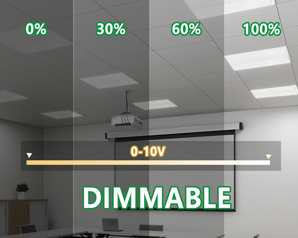 With 0-10V dimming capability, adjusting light levels is effortless, making this fixture ideal for a range of environments, including offices and retail spaces. Designed for 120-277V input, it offers straightforward installation and reliable operation in various settings.