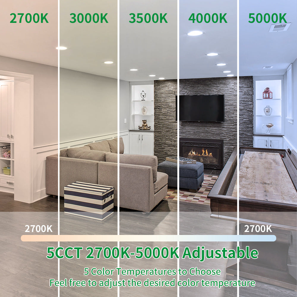 Upgrade your space with the Haloitte Lighting 4-inch Selectable CCT LED Downlight Fixture, a versatile and energy-efficient solution for modern lighting needs. Featuring a sleek, ultra-thin baffle design, this canless downlight offers seamless integration into any decor and is ideal for wet locations like bathrooms and kitchens. With a dimmable range from 10% to 100%, selectable color temperatures, and up to 644 lumens of brightness, it delivers customizable lighting for new construction, remodeling, or retrofits. Its slim profile and independent junction box make it perfect for ceilings with limited vertical clearance, providing a complete, hassle-free lighting upgrade.