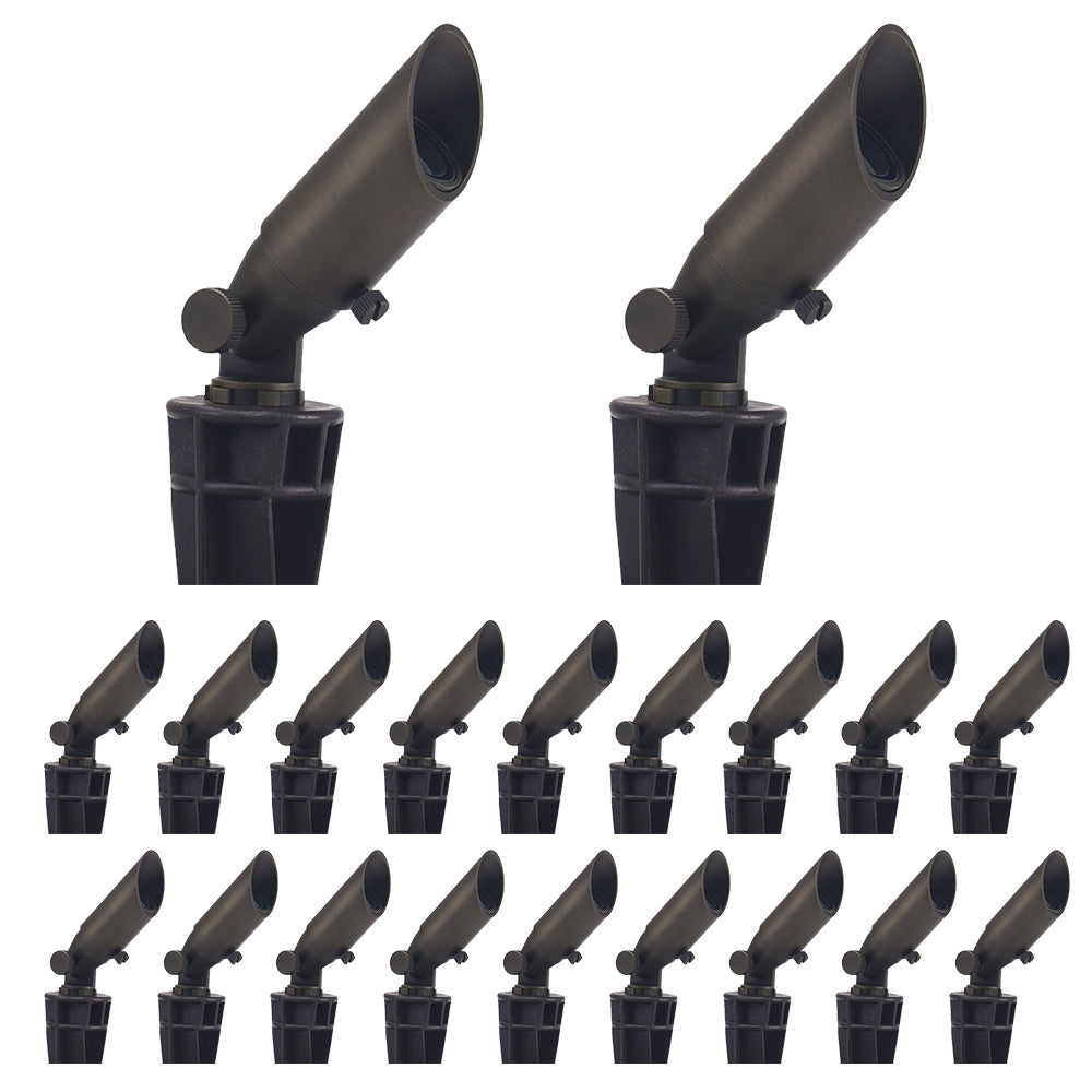 Illuminate your outdoor spaces with the Haloitte Lighting solid brass LED spotlight, engineered for long-lasting performance and classic style. Constructed from solid die-cast brass with a weather-resistant bronze finish, this fixture is designed to use an MR11 LED bulb (not included). The integrated glare shield and adjustable head provide precise light direction, ideal for tree uplighting, garden accents, and architectural features. Operating at 12V AC/DC, it requires a low-voltage transformer for efficient performance. The included ground stake ensures quick, secure installation. A perfect solution for reliable, elegant landscape lighting.