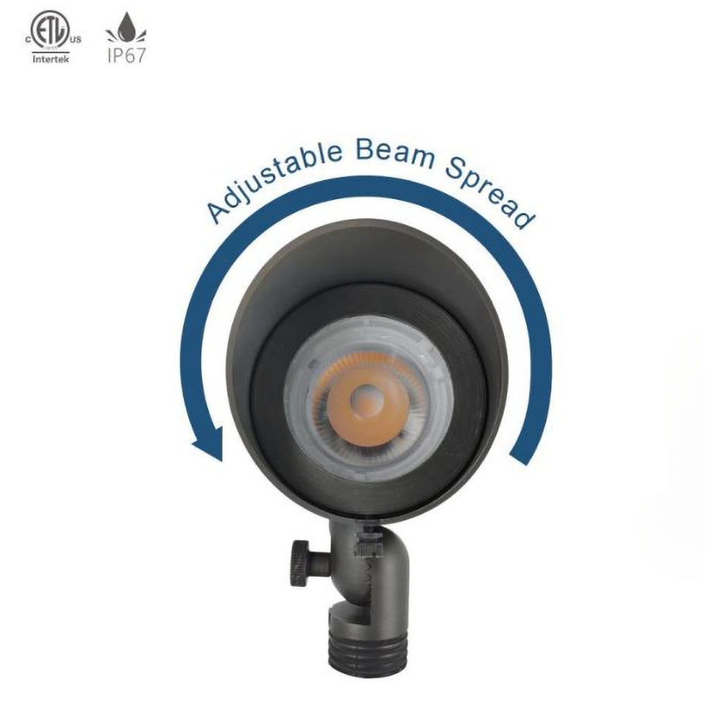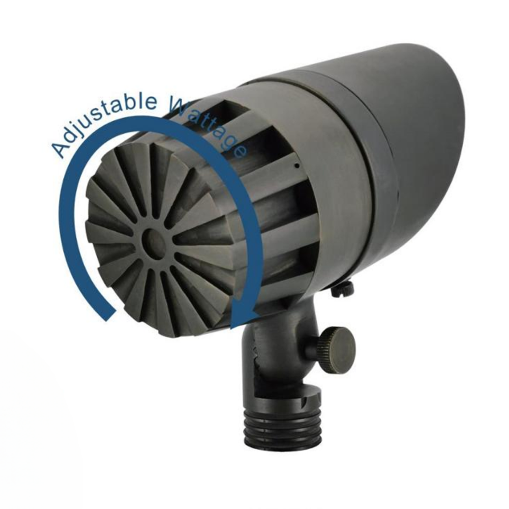 The Haloitte Lighting LED landscape flood light offers field-selectable wattage and an adjustable beam spread from 20° to 60°, providing flexibility for various outdoor applications. Emitting up to 2000 lumens in warm white 2700K or 3000K, it delivers powerful yet glare-controlled illumination with an integrated shield and diffuser. Crafted from corrosion-resistant solid brass with a bronze powder-coated finish, this fixture ensures long-term durability. An IP65 waterproof rating and rubber gasket seal protect it from harsh weather. Ideal for landscape lighting, architectural accents, exterior home illumination, and subdivision signage.